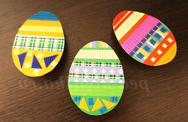3. З кольорового картону вирізаємо шаблони яєць , прикрашаємо