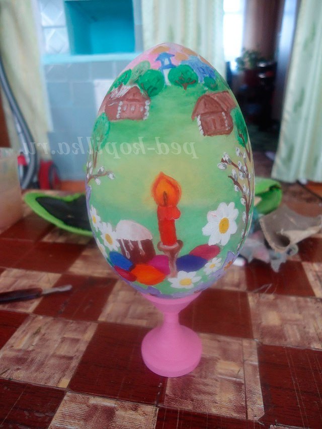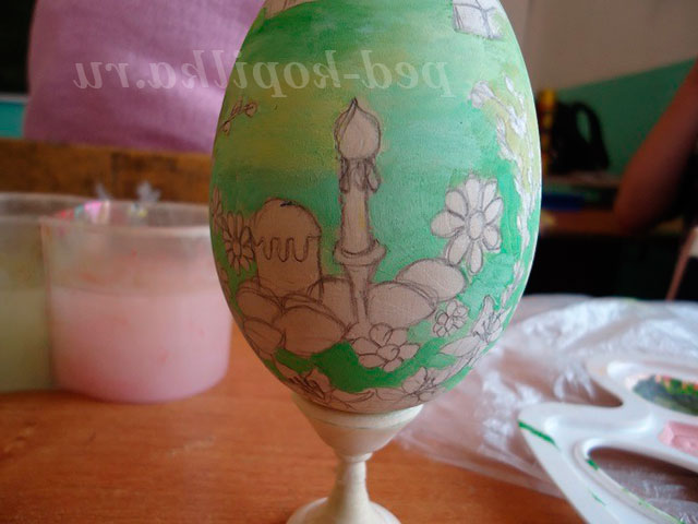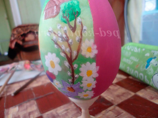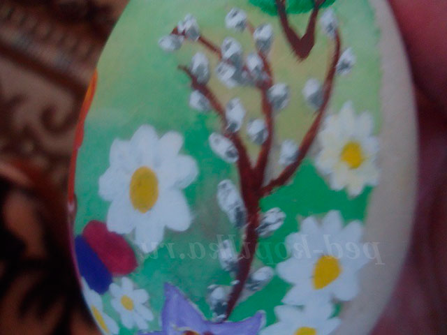 9. Намалювала гуашшю паска, яйця і свічку на передньому фоні.