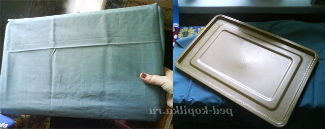 Звичайне відро з під майонезу обмотуємо текстилем і піднос як основа обтягуємо тканиною все добре кріпимо
