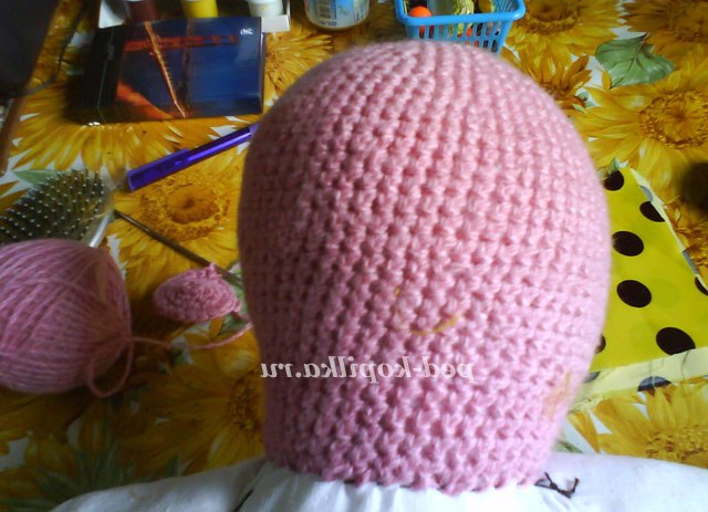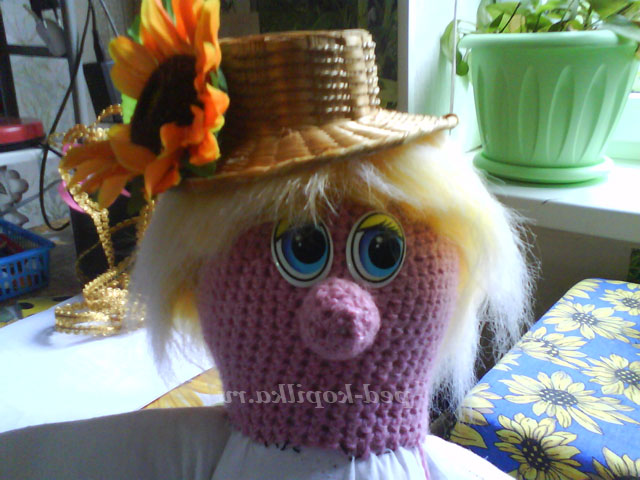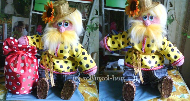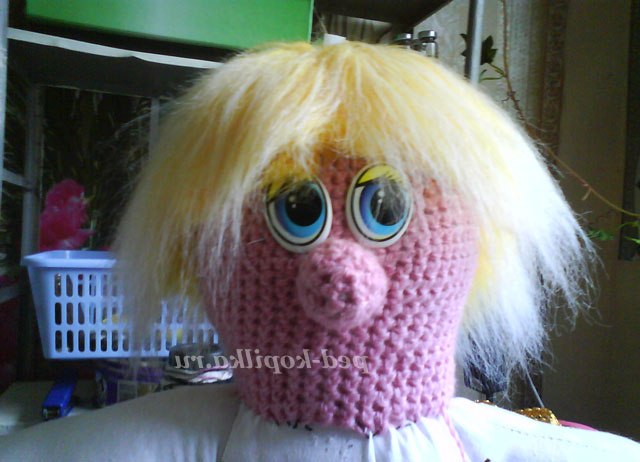 Вже наш домовик дивиться на нас, носик я теж пов'язала як мішечок і набила синтипоном, пришила нитками, вийшла ось така заготовка