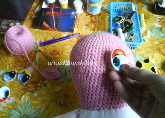 Далі, на нашу мордочку я закріпила оченята за допомогою клею