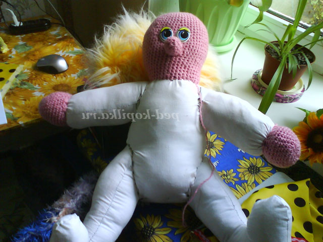 Приступаємо до роботи, я із звичайної білої тканини пошила ляльку потрібну вам розміром, зв'язала мішечки для голови і ручок
