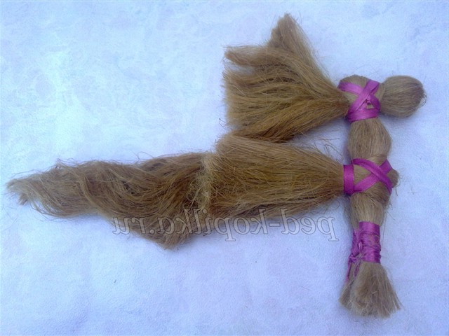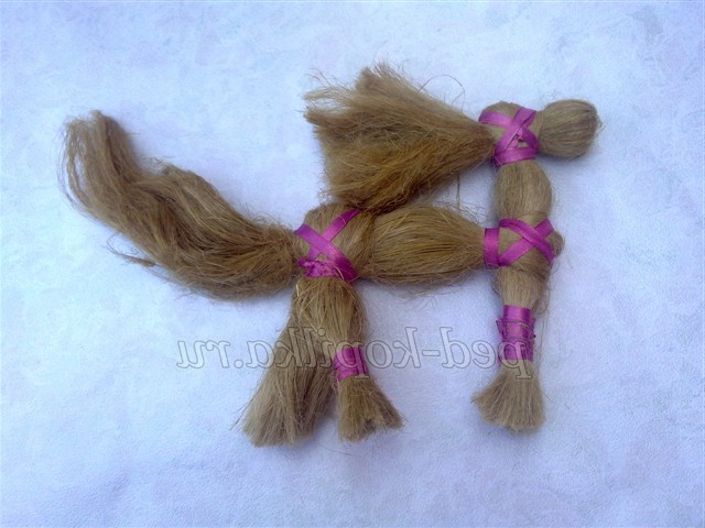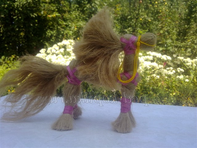17. Ділимо льон навпіл, формуємо ноги, перев'язуємо стрічкою.