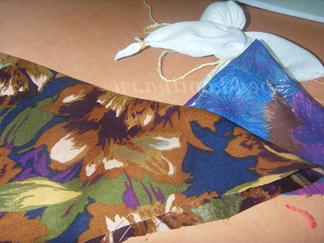 На середину білого клаптя поміщаємо шматочок вати і сматываем,