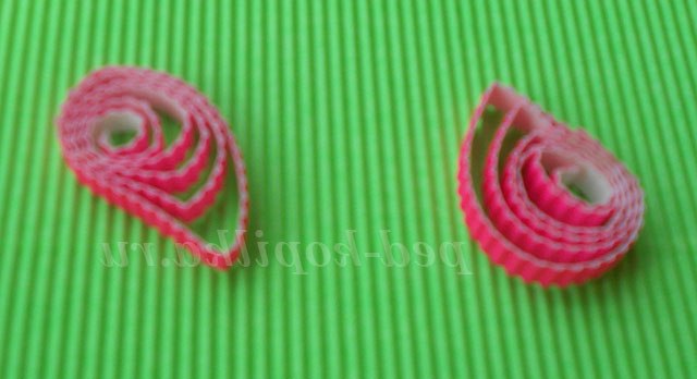 7. Розріжте смугу шириною 5 мм Навпіл і виконайте два елемента «крапля» з ролів діаметром 18 мм