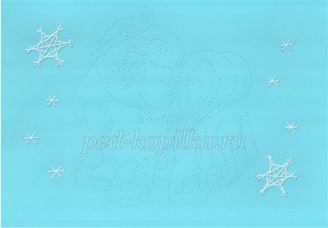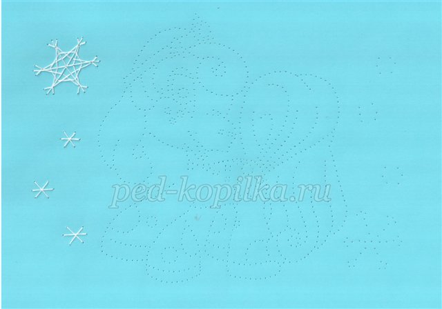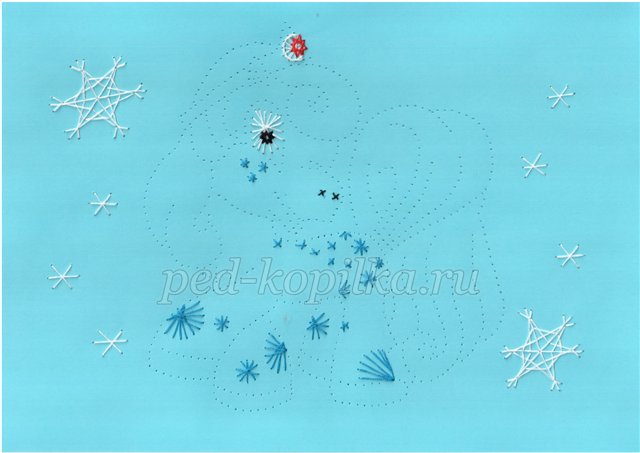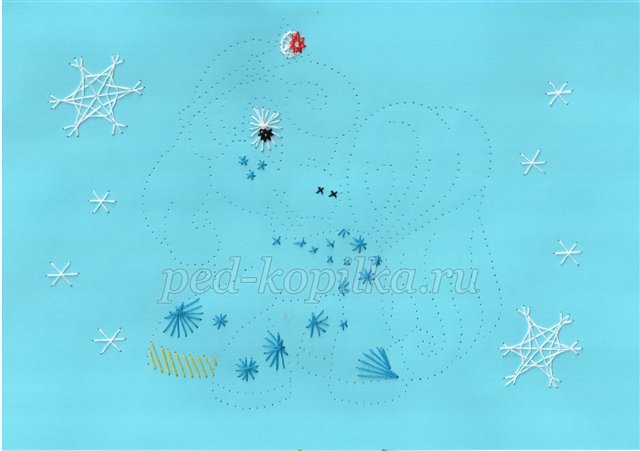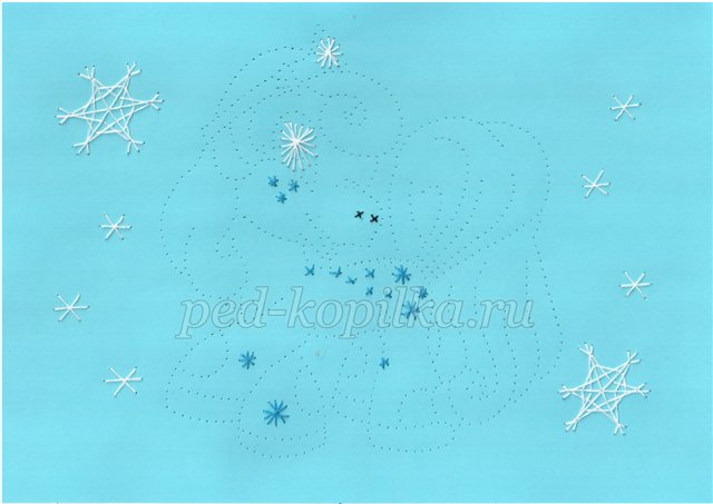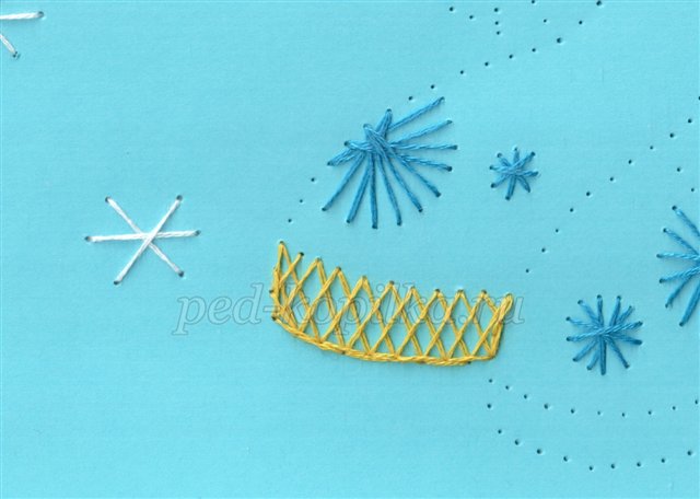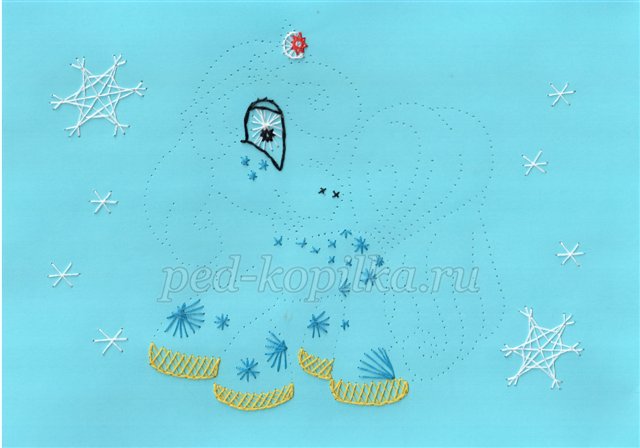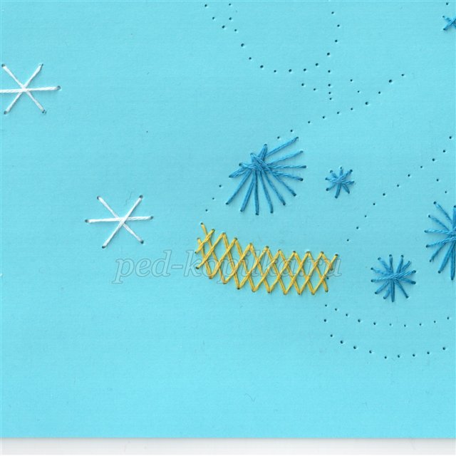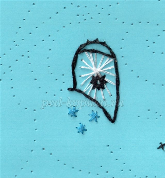 5. Потім вишиваємо маленькі сніжинки білим кольором за схемою