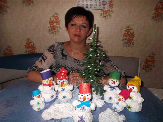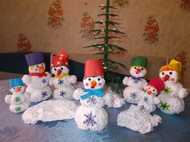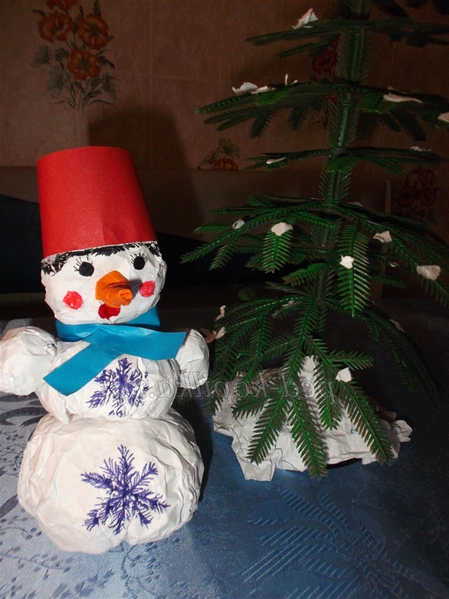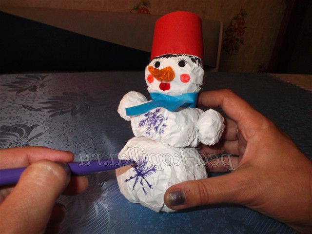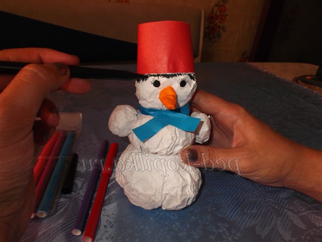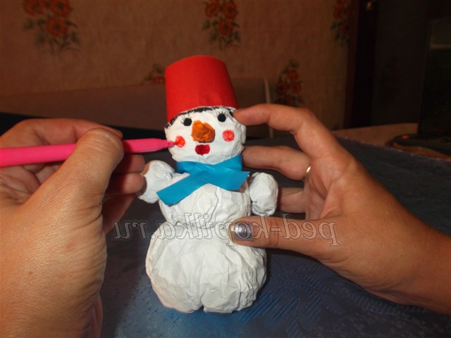 Наш сніговик готовий. Можна посадити його під ялинку.
