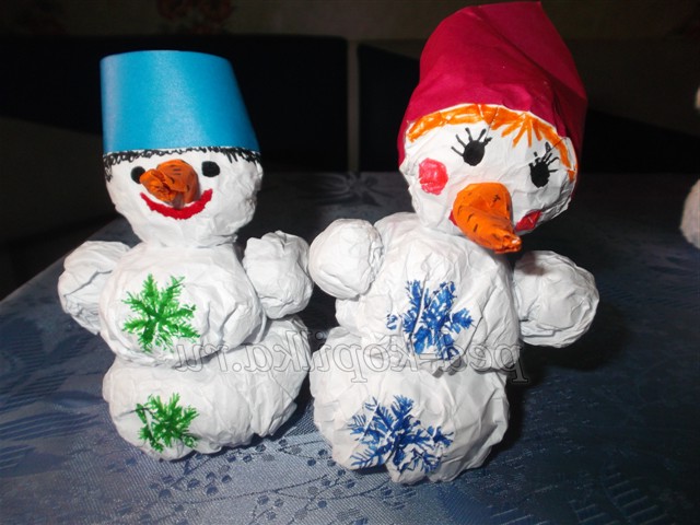 Або маленьких снеговичат. Зменшивши кількості використовуваного матеріалу, потрібно брати аркуші формату А4.