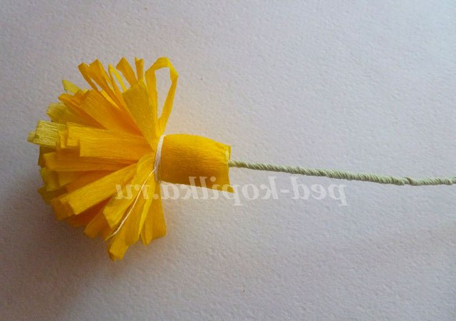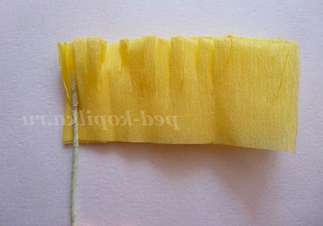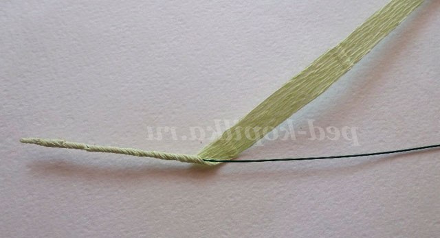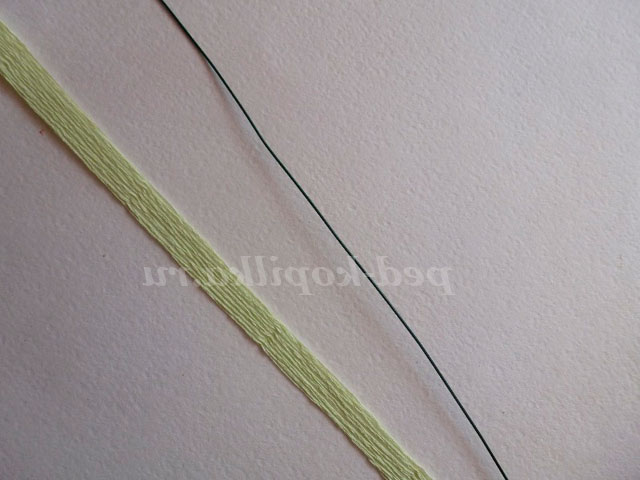 Вирізати смужку із зеленої гофрованого паперу та обмотати дріт.