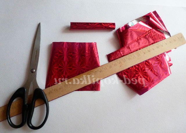 Ріжемо фольгу і фатин на квадрати розміром 10*10 див.