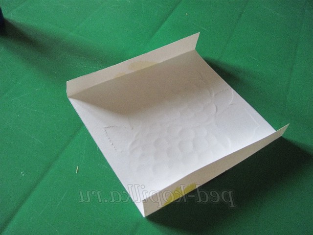 Намажте згини клеєм. Приклейте заготовку до правого нижнього кута картону.