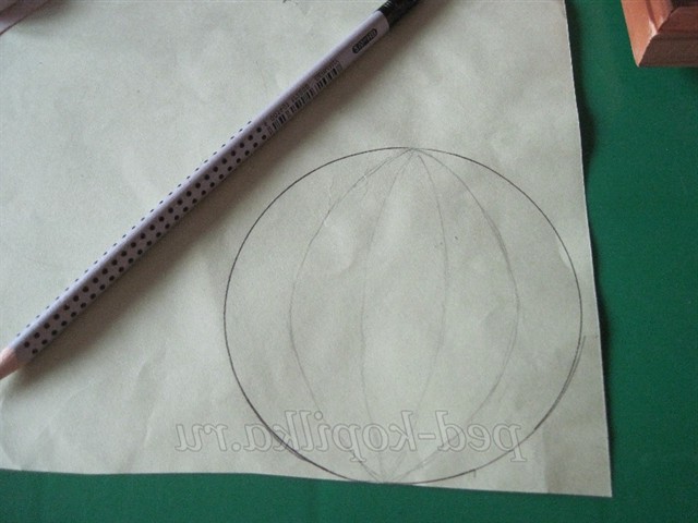 Тонкими контурами намалюйте кавуну широкі смужки.