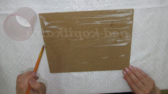 1. Густо покриває заготовку з ДВП клеєм ПВА