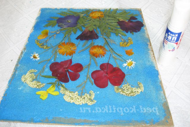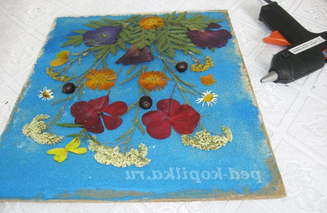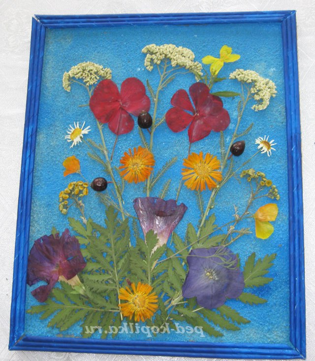 На прогулянці ми з хлопцями збираємо цікаві квіти і листя, потім засушиваем їх і використовуємо в якості робочого матеріалу на занятті, а так само у вигляді елементів декору для оформлення виставок, фоторамок, фотоальбомів і т.д.