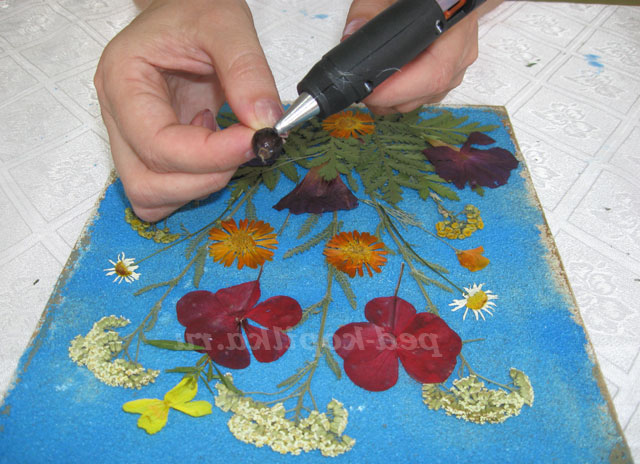 16. Якщо в роботі використовуються насіння шипшини, кісточки лимона і тд., то їх краще приклеювати клейовим пістолетом. (фото 28,29)