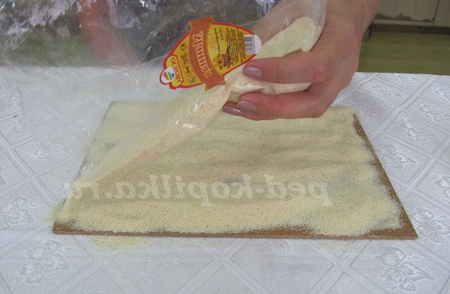 11. І ось, наша основа висохне, обережно зсипаємо залишки манної крупи