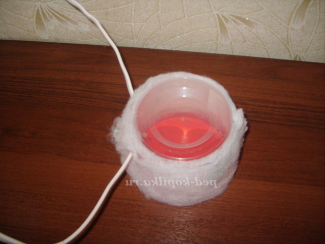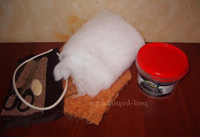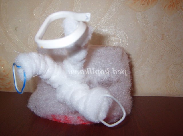 Вирізаємо прямокутник із синтепону (висота = висоті відра, довжина = довжині окружності кришки відра) і обмотуємо його навколо відра і зшиваємо краю разом.