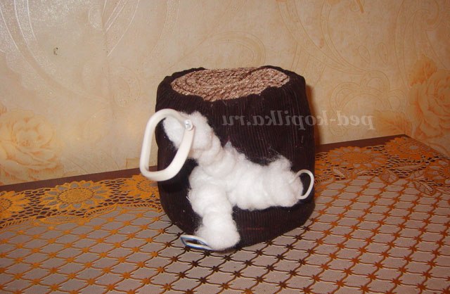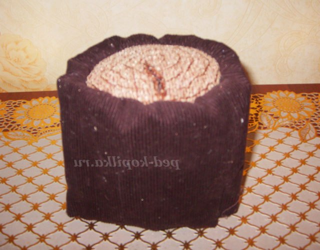 Основою скарбнички виступає звичайне відро з-під джему. Відро перевертаємо. Кришка внизу.