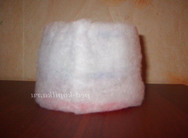 З'єднуємо «розпил» пня з деталлю, низ деталі подогнем на 1,5 см і прострочим, щоб потім вздет гумку.