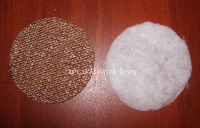Тепер займемося «розпилом» пня. Вирізаємо коло = радіусу низу відра (одна деталь з тканини, інша з синтепону)