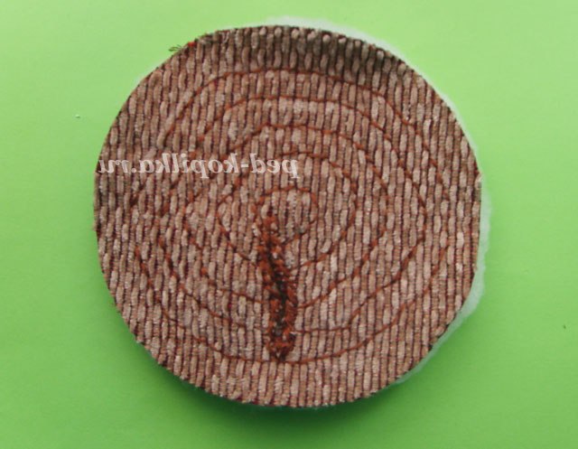 Поєднавши дві деталі, прошиваємо швом «вперед голку» кільця пня, потім прорізаємо тріщинку і опрацюємо обметочным швом.
