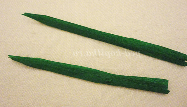З крепованого паперу готуємо необхідну кількість стеблинок. Для цього нарізаємо папір смужками 2(2,5)см на 5(6)див.