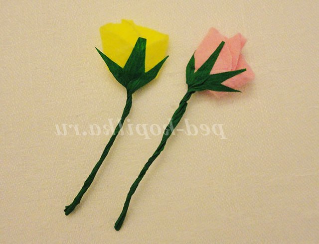 Акуратно вивертаємо заготовку для троянди. При виготовленні троянди з гофрованого паперу, вивертати заготівлю потрібно особливо обережно, папір може порватися.