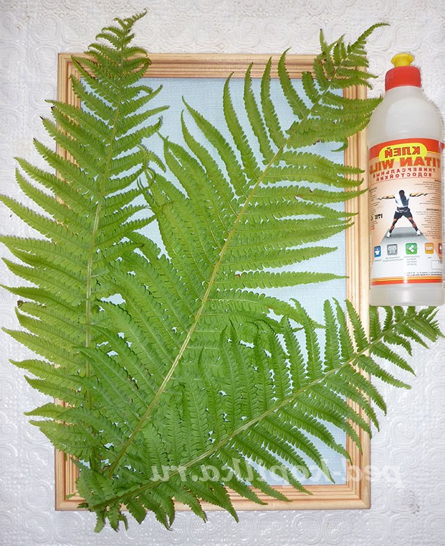 7. З допомогою клею «Титан» на основу нашої вироби приклеюємо листя папороті