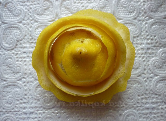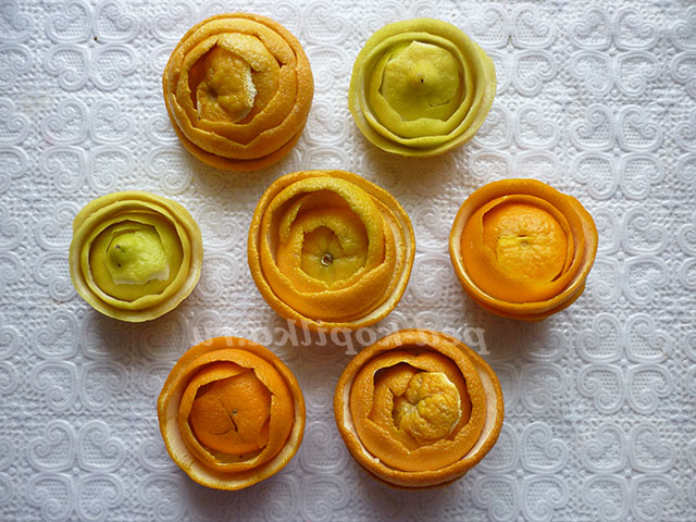 3. Таким чином очищаємо лимони, мандарини і апельсини і формуємо трояндочки