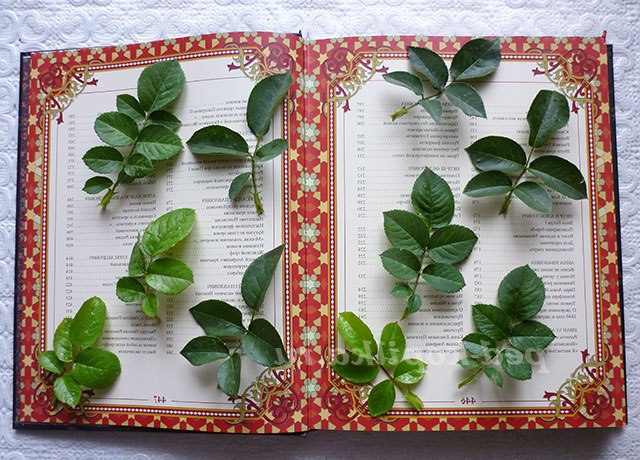 5. Листя папороті і листя троянд кладемо під прес і теж даємо час підсохнути.