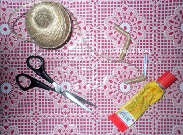 4. Обмотуємо отримані куточки шпагатом і приклеюємо.