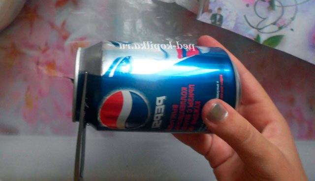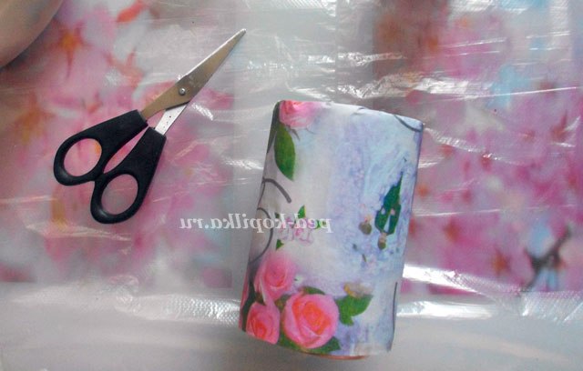 4. Обертаємо нашу банку з-під газованої води красивою папером і склеюємо її клеєм ПВА, для того що б зафіксувати.