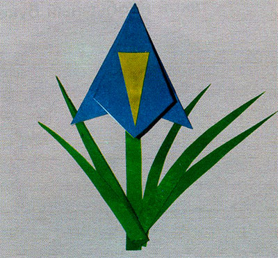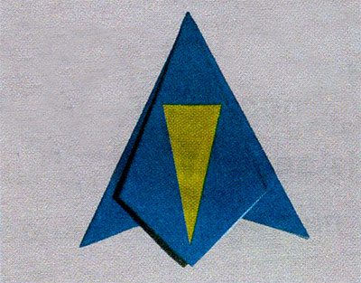 2. На широкий синій «пелюстка» наклей жовтий трикутник.