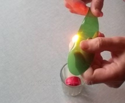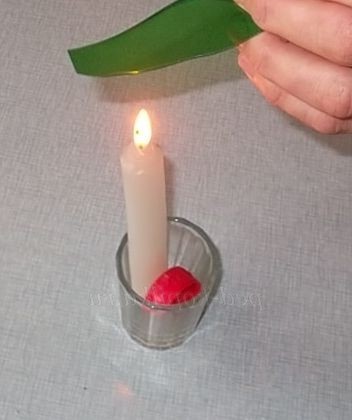 2. Обробити кожен листочок над свічкою. Спочатку по контуру листки, а потім внизу з лицьового боку, щоб листочок трохи випростався.