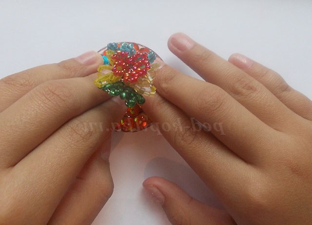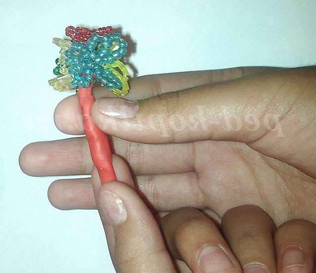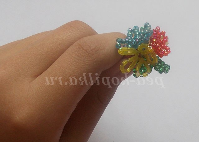 4. З решти 4 дротів цим же способом, з бісеру інших кольорів, робимо такі ж листочки.