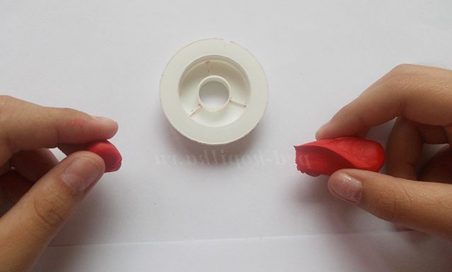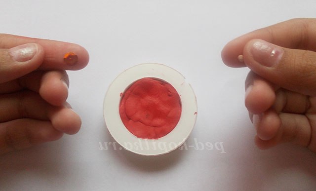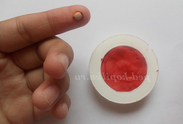 8. Беремо порожню котушку наповнюємо її пластиліном червоного кольору.