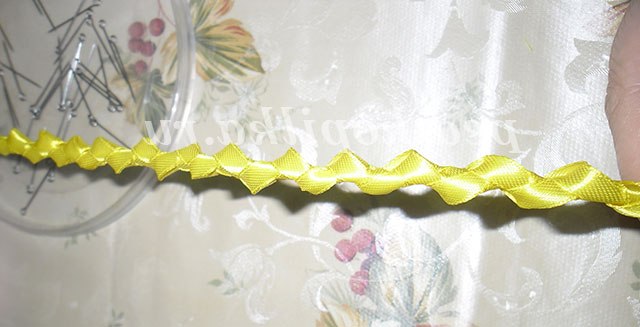 Вирішуємо, якого корзиночка буде кольору і форми. У нас два варіанти. Перший - корзиночка одноколірна - проста, але оформлена зібраної рюшів стрічкою.