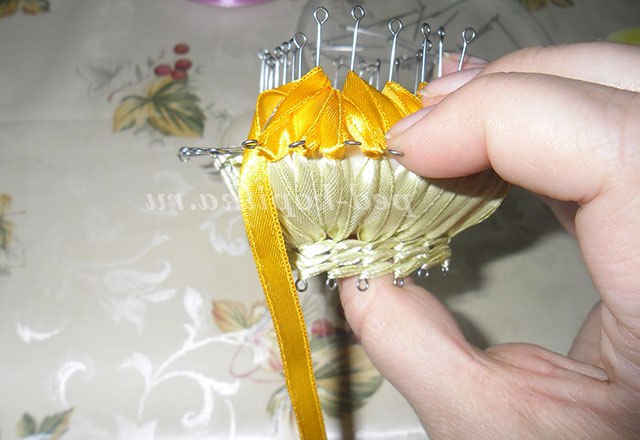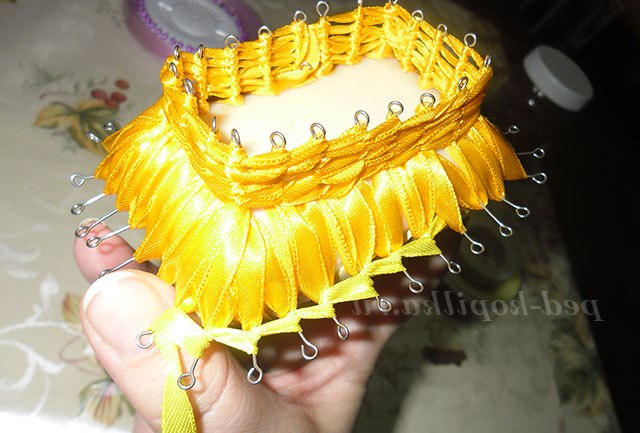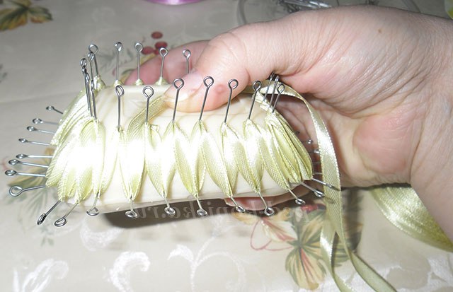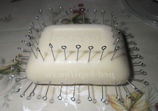 Будь кошичок починаємо з оформлення мила шпильками і стрічками.
