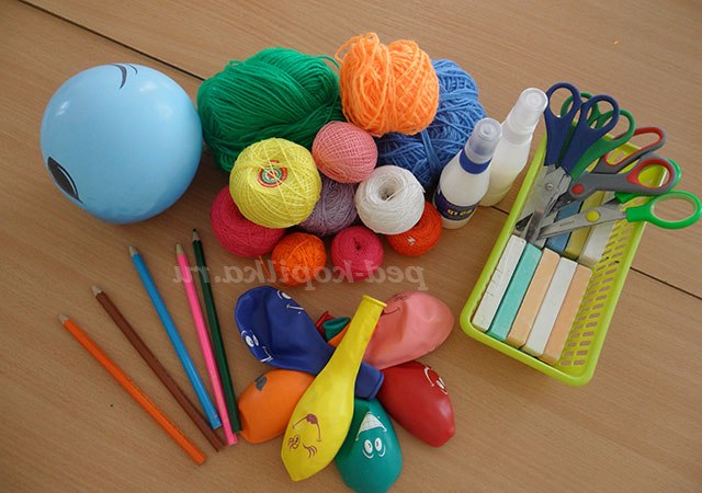1. Надуем 6 повітряних кульок розміром приблизно з велике яблуко і один кулька побільше для вази, добре їх завяжем, кінець нитки відріжемо.