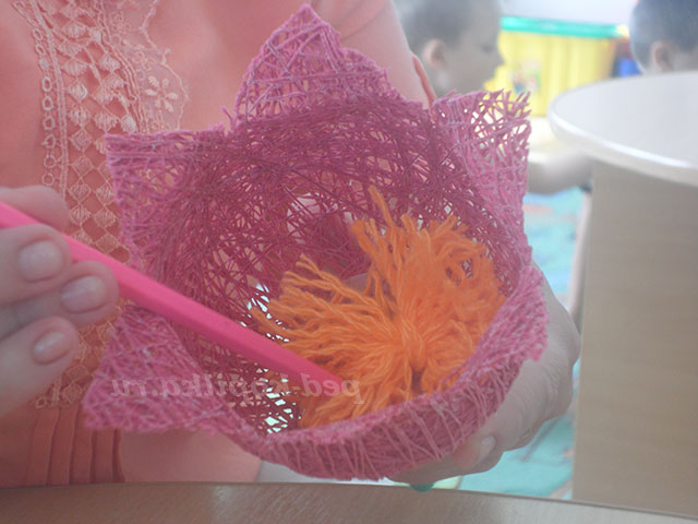 12. Для серединки у квітки необхідно виготовити помпони різних кольорів, потім приклеїти їх на дно бутона (або серединку зробити з оксамитової папери).