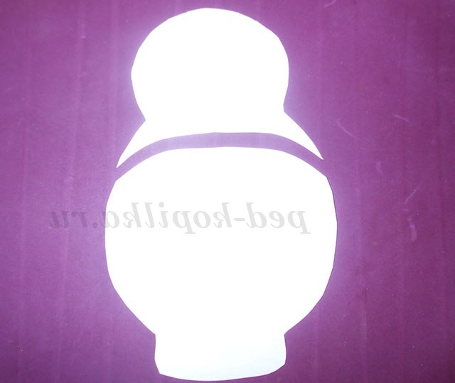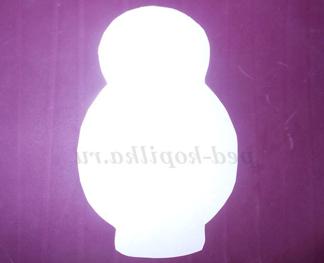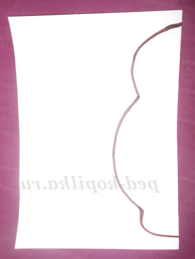 1. Зігни лист А-4 навпіл і намалюй половину матрьошки. Виріж.