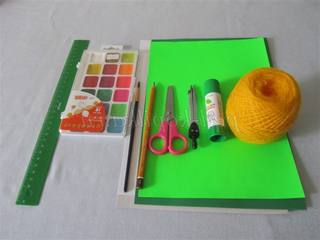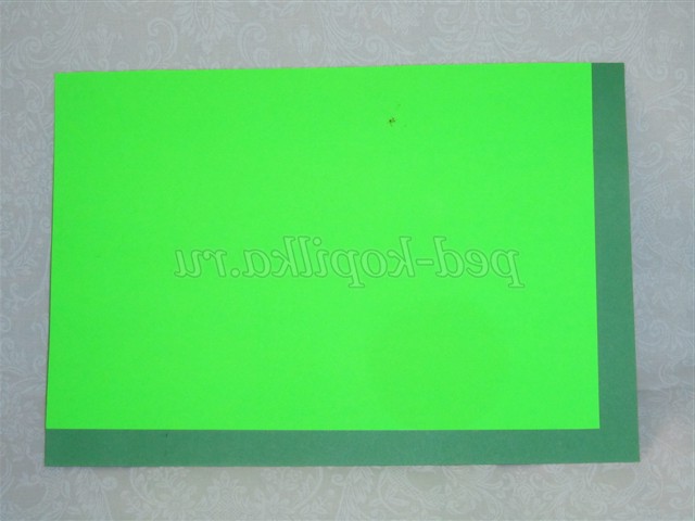 1. Взяти аркуш картону темно - зеленого кольору, розташувати його горизонтально.