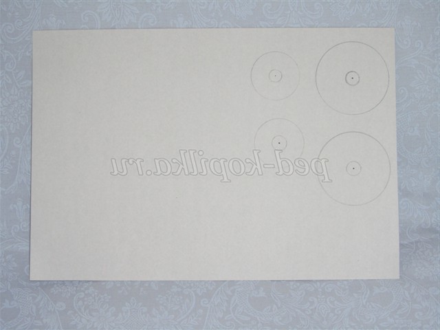 1. На аркуші білого картону накреслити 2 кола діаметром 6 див. в центрі креслять коло діаметром 1 див.