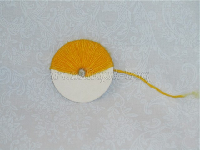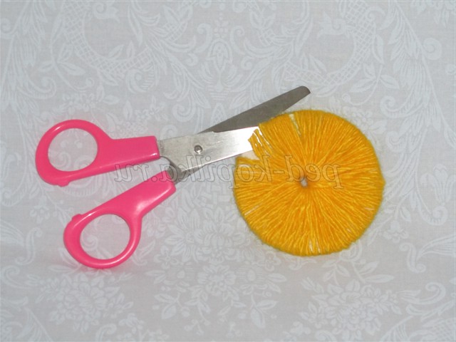 6. Всі намотані нитки розрізати ножицями по зовнішній стороні кола.
