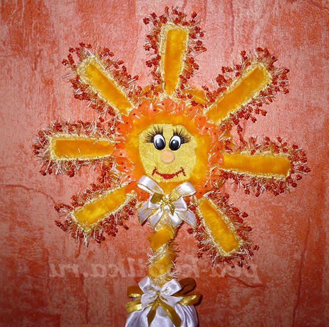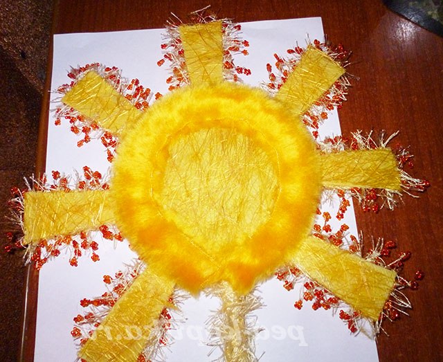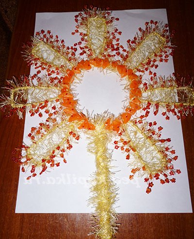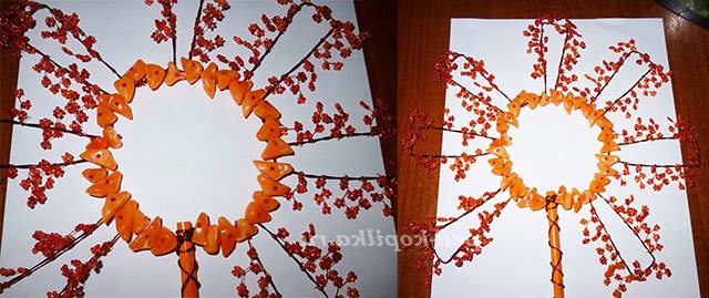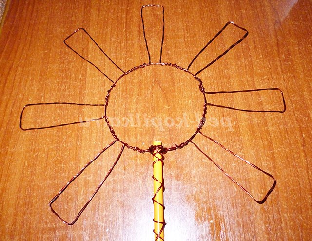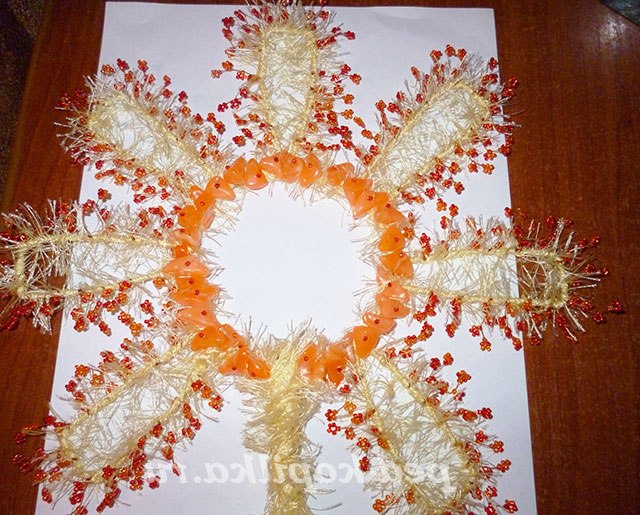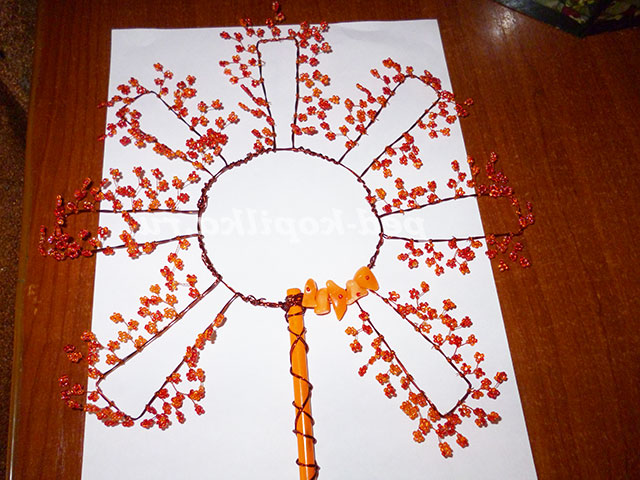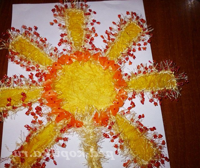 По колу сонечка накручую намистинки нестандартної форми.