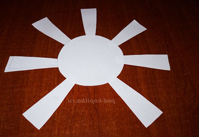 А ось тепер я взялася за сизалеві волокно. На кожен пелюстка я роблю шаблон з сизалю, складеного в два шари. Шаблончик повинен бути на кілька мм більше країв самого промінці. На коло самого сонечка роблю такий самий шаблон.