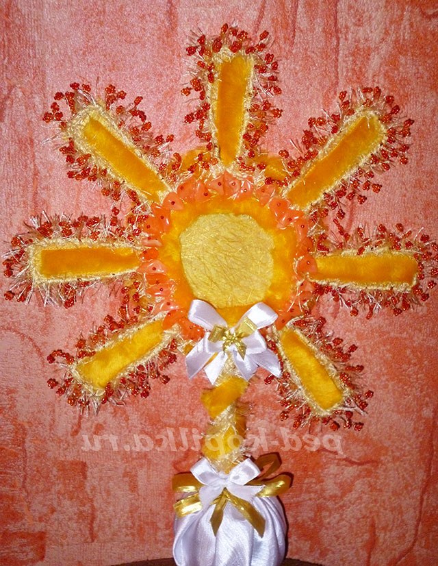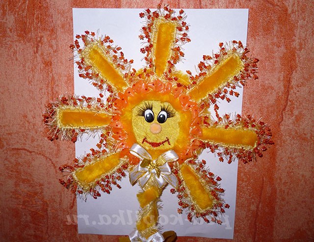 Але, перш, ніж приступити до його виготовлення, я хотіла б у вас дещо запитати. От скажіть мені, коли ваша мама сумує, вам не здається, що і на вулиці стає похмуро і похмуро? (діти відповідають). А ви помітили, що коли мама посміхається, то і сонечко світить яскравіше і все навколо світиться? (діти відповідають). Так тоді виходить, що наші матусі, як сонечка! Вони випромінюють тепло і світло навколо себе. Ви зі мною згодні? (діти відповідають)