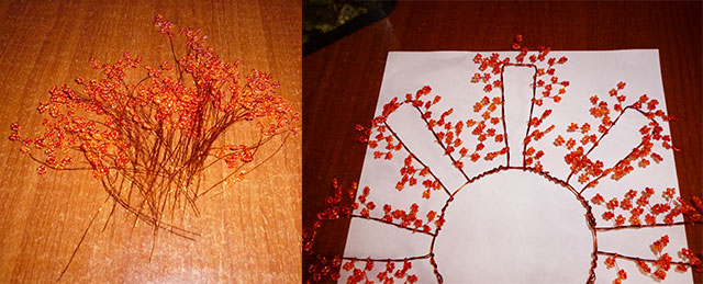 Накручую гілочки з бісеру на каркас по всьому периметру всіх промінчиків.