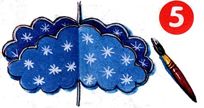 5. Так вийде чотиристороння хмаринка, на якій з усіх сторін намалюємо сніжинки.