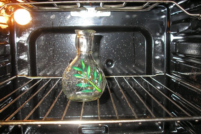 9. Для прискореного висихання і створення більш якісного покриття, розписаний глечик необхідно піддати термообробці. Після повного висихання фарби глечик на 15 хвилин поміщаємо в духовку на 15 хвилин при температурі 150 проС.